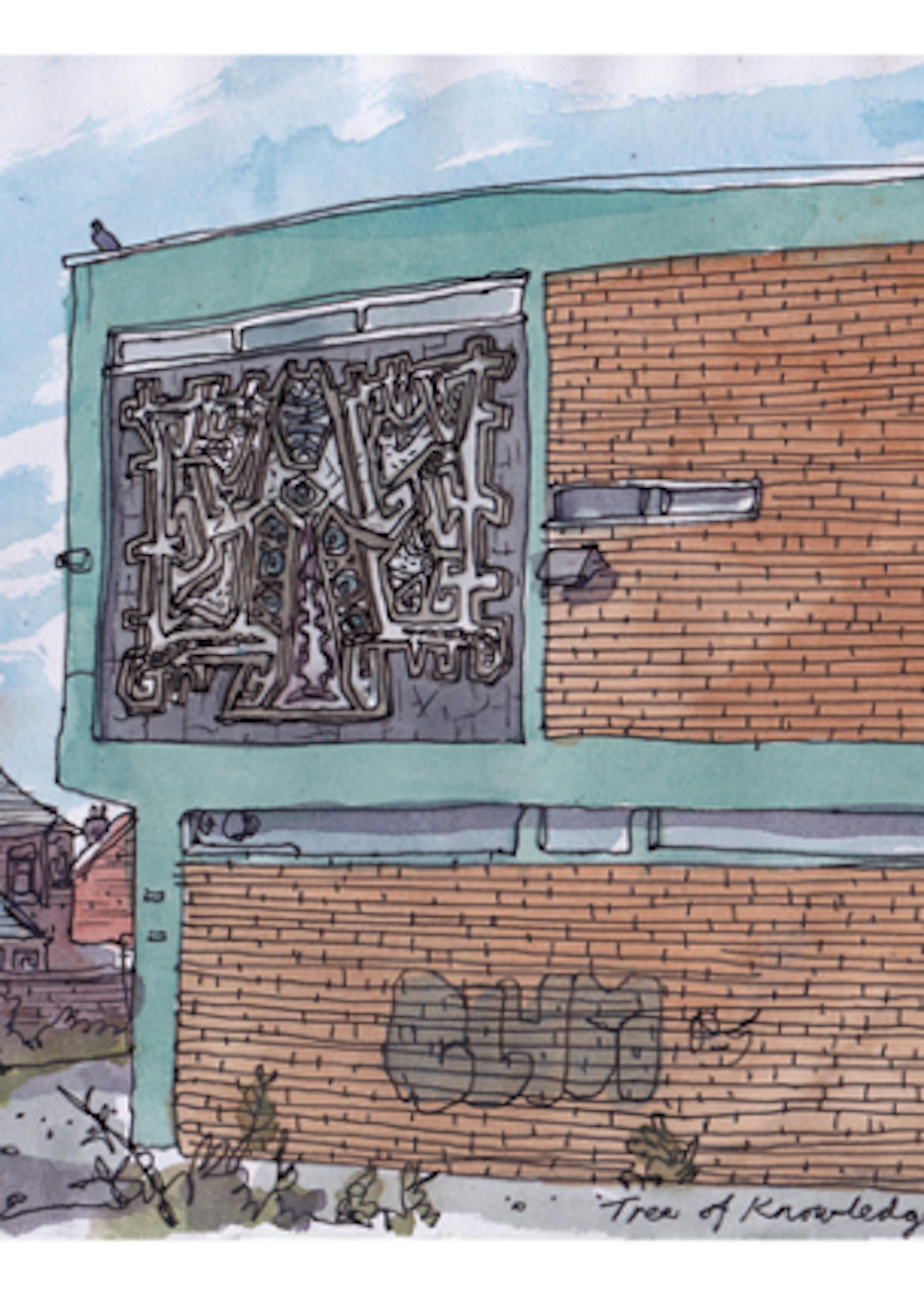 The Tree of Knowledge is a listed relief mural by artist Alan Boyson and celebrates its 60th anniversary in 2022. As well as being a local landmark it is next door to Albion Academy.