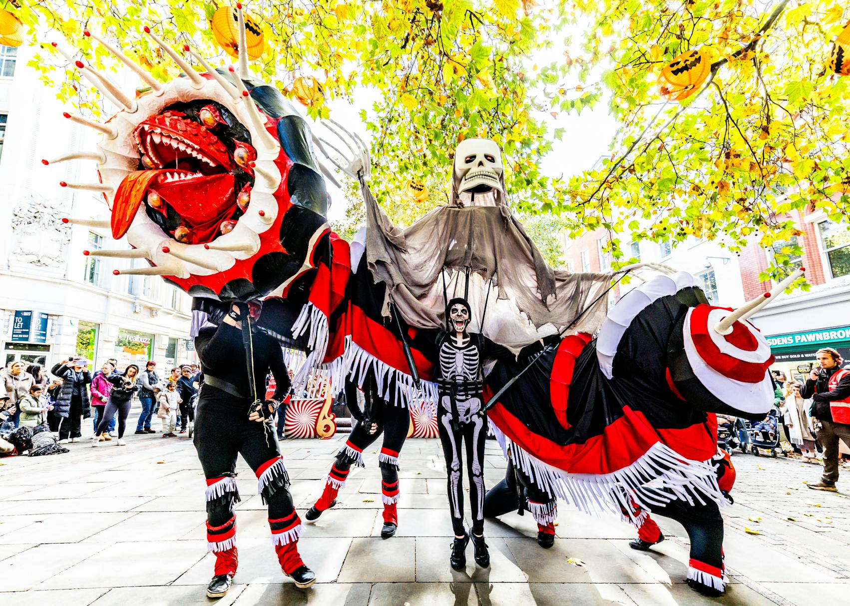 We’ve worked with the festival’s creative leads to develop performances which fit within the imagined world of Lost Village, using theatricality and surreal rituals to create shows which mesmerise and amaze. Some moments are smaller and experienced only by a lucky few, others are massive and seen by thousands. Each year the trilogy of shows take place on consecutive days of the festival, with a narrative woven through them all leading to a spectacular denouement on the Sunday night.