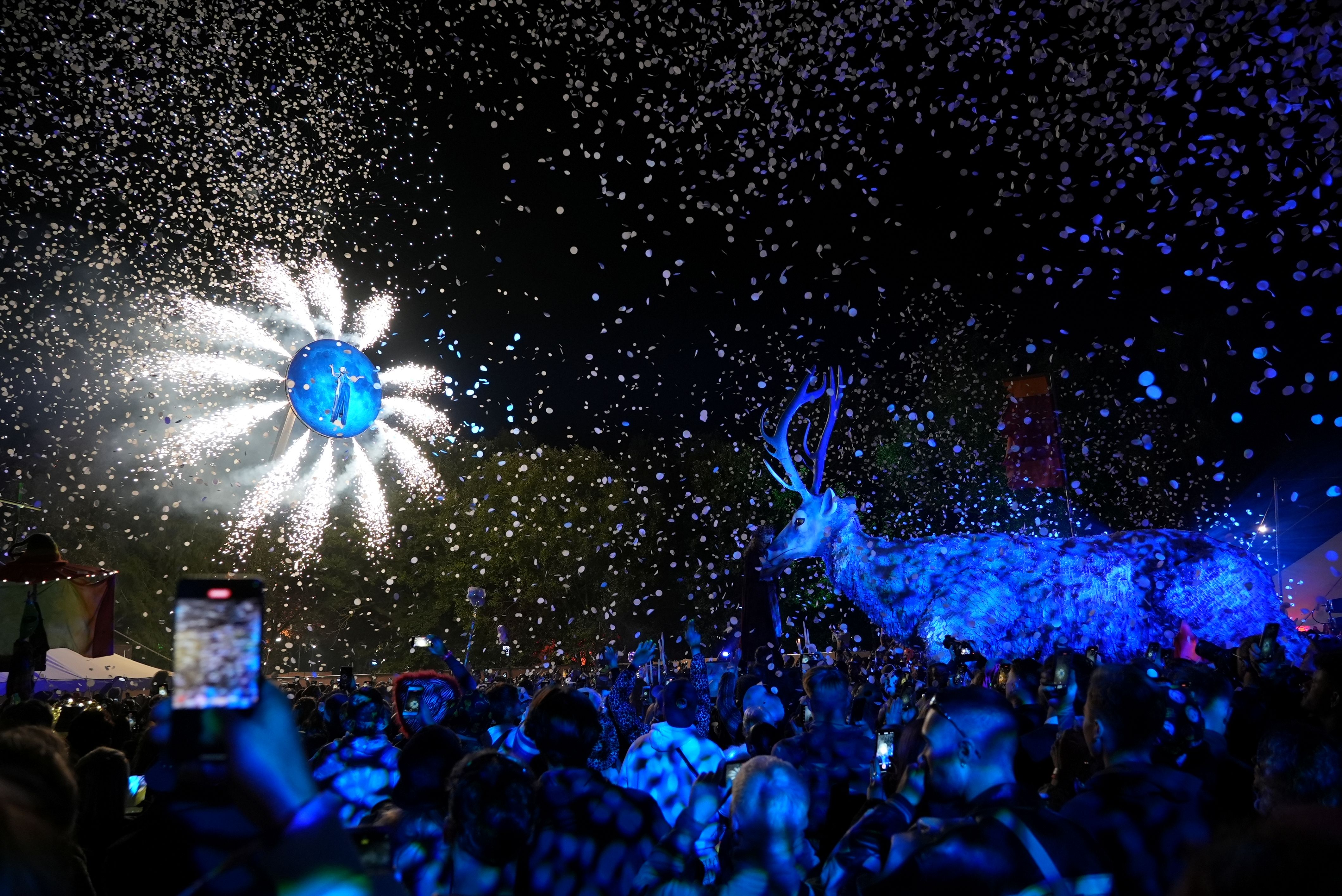 We’ve worked with the festival’s creative leads to develop performances which fit within the imagined world of Lost Village, using theatricality and surreal rituals to create shows which mesmerise and amaze. Some moments are smaller and experienced only by a lucky few, others are massive and seen by thousands. Each year the trilogy of shows take place on consecutive days of the festival, with a narrative woven through them all leading to a spectacular denouement on the Sunday night.
