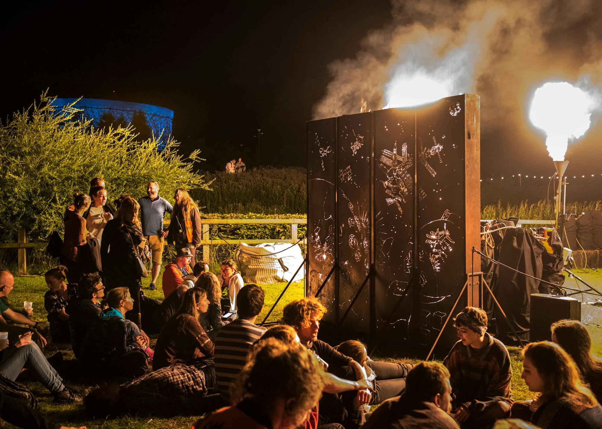 Our partnership with bluedot began at the very first festival in 2016, when we created The Outer Space. We returned again in 2017 with Space Walk, a unique gathering place that came into its own late in the evening.