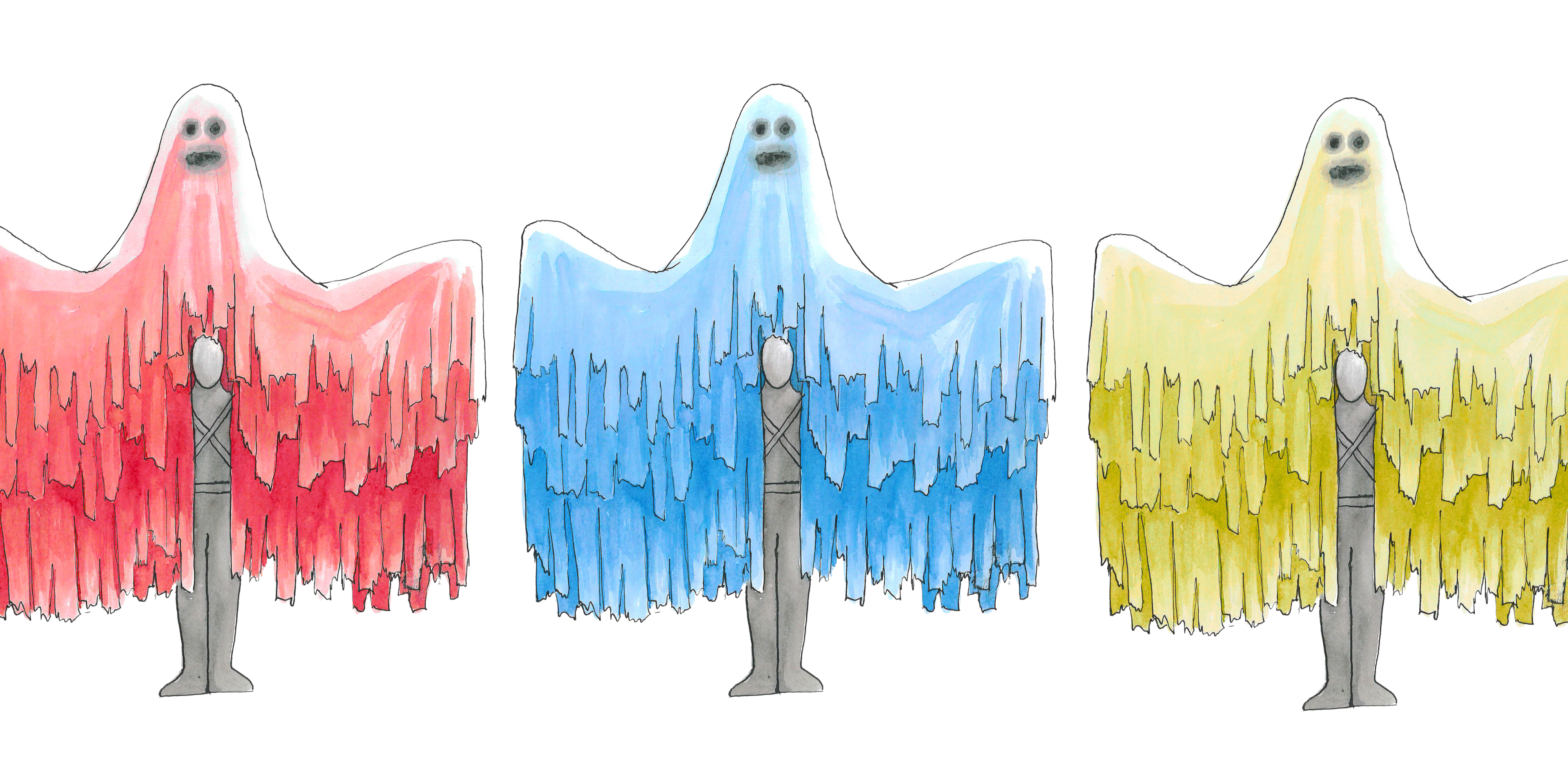 Meet The Family of Phantoms; draped in illuminated, flowing capes these ghosts move as one; like a drifting cloud, gently enveloping audiences as they float mysteriously, appearing and disappearing, in pursuit of the ghost rider on wheels and their accompanying ethereal music.